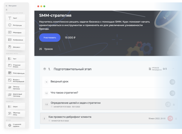 Запустите свой курс. Доступен весь инструментарий для успешного запуска